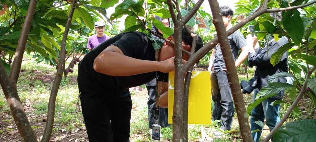 Antusiasme warga terlihat selama kegiatan berlangsung, mengingat sebagian besar petani kakao baru pertama kali mengenal metode pengendalian hama tersebut. Kegiatan kemudian dilanjutkan dengan pembagian sampel Yellow Trap kepada peserta agar dapat dicoba secara mandiri di ladang masing-masing. Suasana kegiatan berlangsung akrab dan interaktif, diselingi dengan diskusi ringan seputar tanaman kakao, termasuk mencicipi buah kakao dan olahan kakao murni hasil kebun warga.