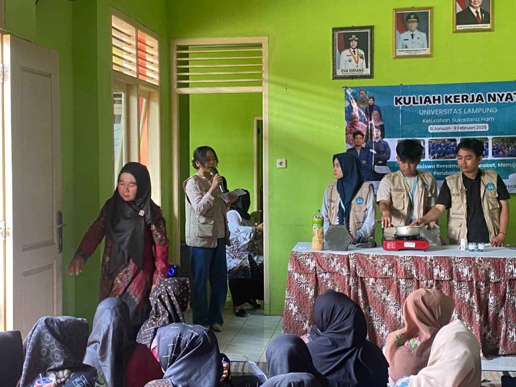 Senin, 26 Januari 2026 – Mahasiswa/i Kuliah Kerja Nyata (KKN) Universitas Lampung melaksanakan kegiatan pembuatan lilin aromaterapi berbahan dasar minyak jelantah di Kantor Kelurahan Sukadana Ham. Kegiatan ini merupakan salah satu program kerja bidang lingkungan dan pemberdayaan masyarakat yang bertujuan untuk mengurangi limbah rumah tangga sekaligus meningkatkan nilai guna minyak jelantah yang selama ini kurang dimanfaatkan. Kegiatan ini dihadiri dan diikuti secara langsung oleh ibu-ibu PKK Kelurahan Sukadana Ham.