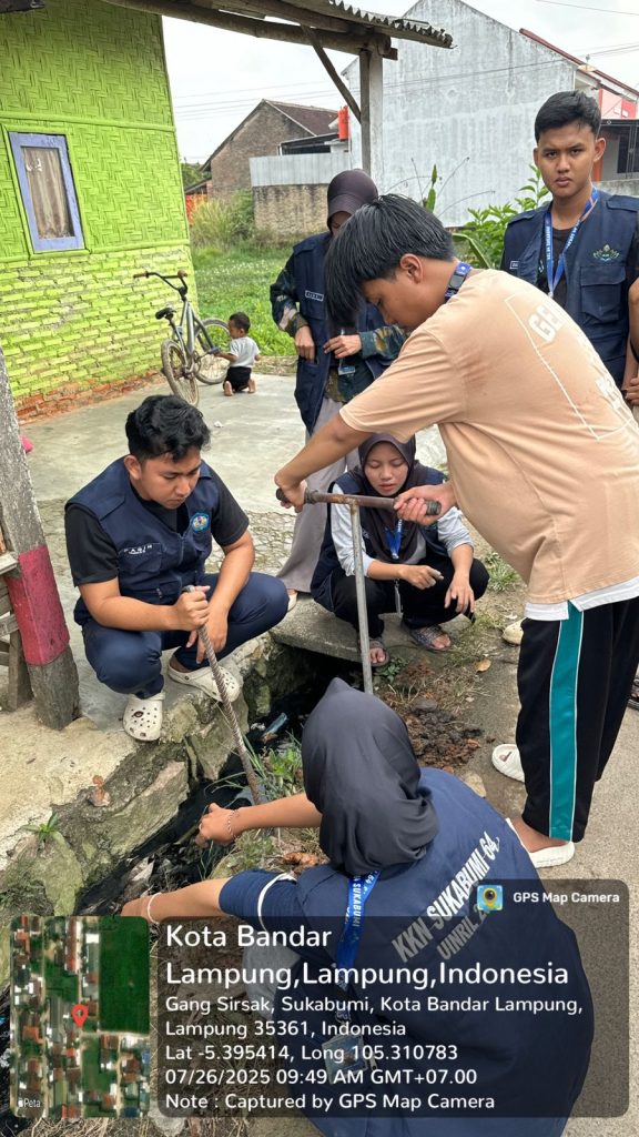 Bandar Lampung, 26 Juli 2025 – Mahasiswa Kuliah Kerja Nyata (KKN) Universitas Lampung bersama mahasiswa KKN UIN Raden Intan Lampung melaksanakan kegiatan penanaman lubang biopori di wilayah Kelurahan Sukabumi. Kegiatan ini dilakukan secara kolaboratif di beberapa titik lokasi yang diketahui rawan banjir dan sering mengalami genangan air, terutama saat musim hujan.