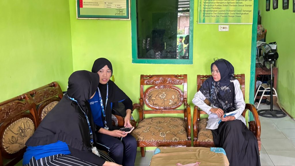Kunjungan tersebut disambut oleh Ibu Diah, selaku guru di MTs Al-Hidayah Rajabasa Jaya. Dalam sesi diskusi, beliau menyampaikan bahwa secara umum lingkungan sekolah berada dalam kondisi kondusif. MTs Al-Hidayah memiliki tiga tingkat kelas, yakni kelas VII, VIII, dan IX, dengan jumlah rombongan belajar yang relatif sedikit.