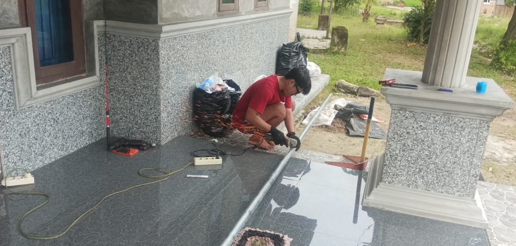 Adapun kegiatan yang dilakukan meliputi penyiapan tiang dan plang yang akan digunakan, pemotongan material sesuai dengan ukuran yang telah direncanakan, serta pembuatan plang nama jalan. Seluruh proses persiapan dilakukan secara bertahap dan melibatkan pembagian tugas antaranggota kelompok agar pekerjaan dapat berjalan dengan efektif.