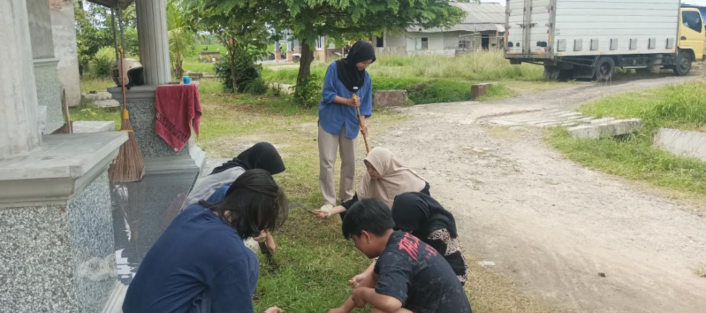 Setelah seluruh kegiatan utama selesai dilaksanakan, seluruh anggota kelompok KKN melanjutkan kegiatan dengan kerja bakti membersihkan area sekitar posko KKN. Kegiatan ini dilakukan untuk menjaga kebersihan dan kenyamanan lingkungan posko sebagai tempat tinggal dan pusat kegiatan selama pelaksanaan KKN.