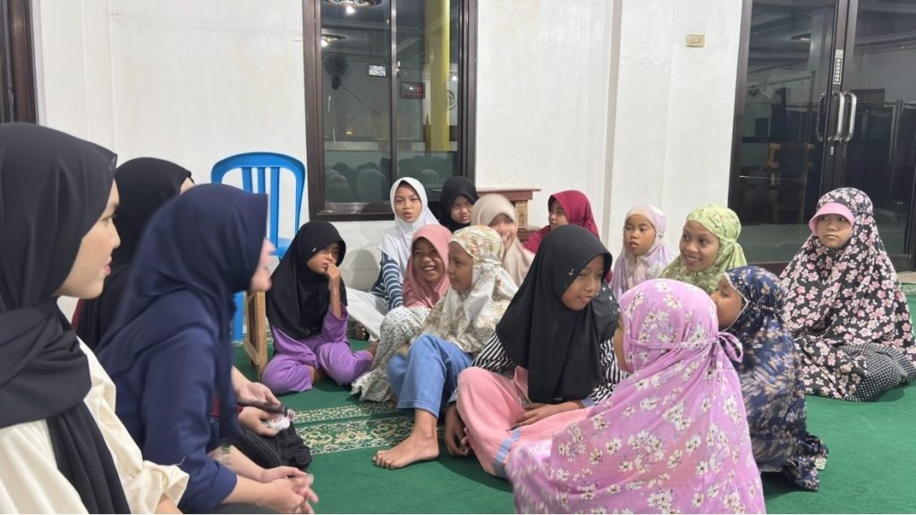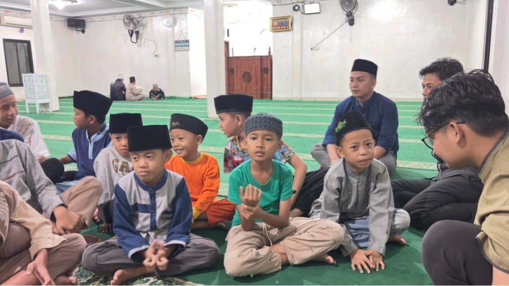 Pada waktu Magrib, sebagian anggota kelompok melanjutkan kegiatan dengan menghadiri sesi belajar mengaji anak-anak di Masjid Nurul Amal, Dusun Induk, sesuai dengan ajakan Kepala Dusun saat kegiatan survei sebelumnya. Dalam kegiatan tersebut, anggota kelompok berkenalan dan berinteraksi dengan adik-adik yang mayoritas masih duduk di bangku sekolah dasar. Suasana belajar berlangsung hangat dan menyenangkan, ditambah dengan kegiatan sambung ayat Al-Qur’an yang disertai pemberian hadiah berupa jajanan kecil, sehingga anak-anak terlihat antusias dan aktif berpartisipasi.
