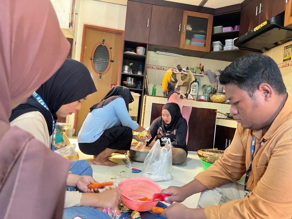 Dengan semangat gotong royong, mahasiswa membantu proses pengolahan bahan, memasak, dan memastikan makanan siap untuk didistribusikan oleh tim PMT. Keterlibatan ini menjadi wujud dukungan mahasiswa terhadap program gizi pemerintah sekaligus ajang belajar langsung tentang manajemen kegiatan kesehatan masyarakat.