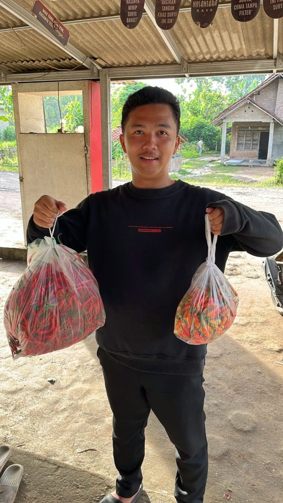 Sebagai penutup rangkaian kegiatan, Kelompok KKN Budi Lestari 3 menerima pemberian cabai dari pengelola salah satu agro eduwisata yang berada di Desa Budi Lestari. Pemberian tersebut merupakan bentuk dukungan, perhatian, serta sambutan hangat dari pihak pengelola terhadap keberadaan mahasiswa KKN yang sedang melaksanakan pengabdian di desa tersebut. Selain menjadi simbol keramahan dan kepedulian masyarakat setempat, pemberian cabai ini juga mencerminkan hubungan baik yang mulai terjalin antara mahasiswa KKN dengan pelaku usaha lokal di Desa Budi Lestari.