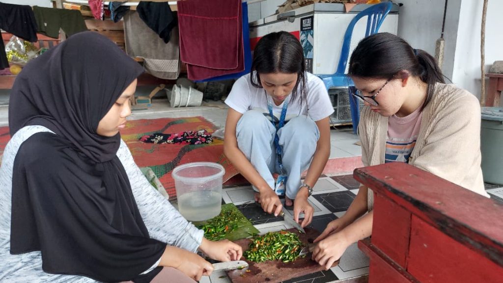 Mahasiswa KKN turut membantu berbagai persiapan acara, mulai dari pembuatan makanan hingga membantu kebutuhan teknis lainnya bersama ibu kades. Kegiatan rewangan dilakukan dengan penuh kebersamaan dan semangat gotong royong antara mahasiswa dan masyarakat.