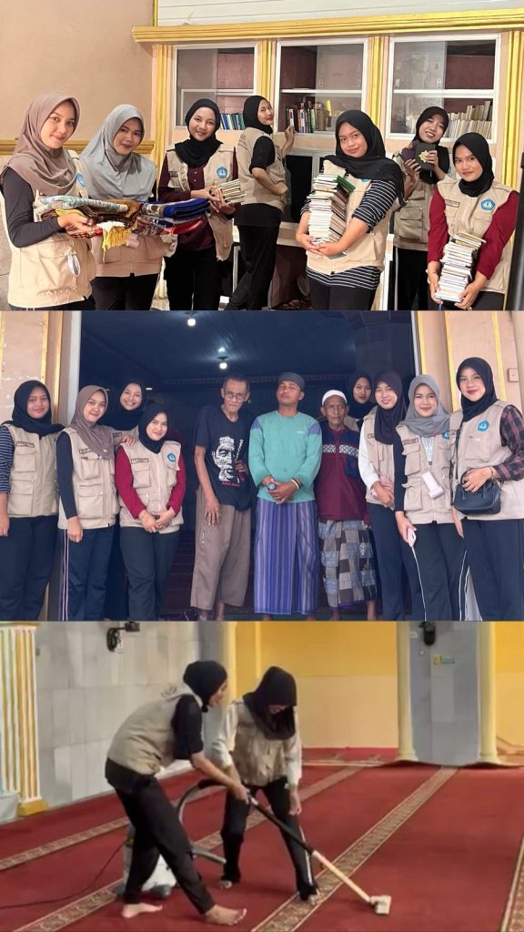 Selain itu, mereka melakukan penyortiran lemari Al-Qur’an dan Yasin, merapikan buku agar mudah diakses oleh jamaah. Pembersihan karpet masjid juga menjadi fokus utama, memastikan ruang ibadah tetap bersih dan nyaman.