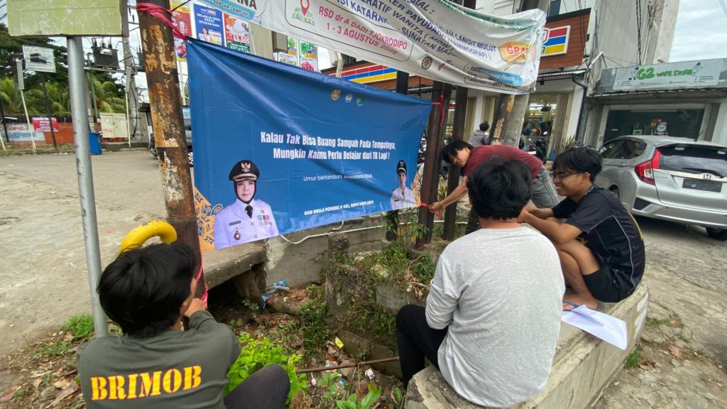 Tidak hanya itu, mahasiswa KKN juga melakukan pemasangan banner larangan membuang sampah sembarangan. Banner ini dipasang di titik-titik rawan pembuangan sampah yang tidak sesuai, dengan harapan mampu mengingatkan masyarakat agar lebih disiplin dalam menjaga kebersihan. Langkah ini menjadi upaya nyata untuk mendukung terciptanya lingkungan yang bersih, sehat, dan nyaman bagi warga sekitar.