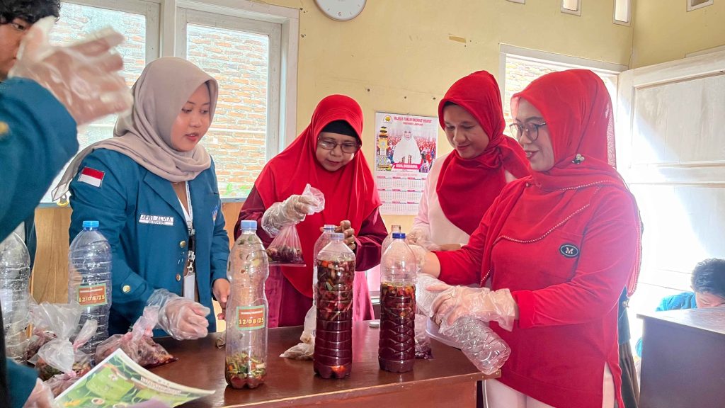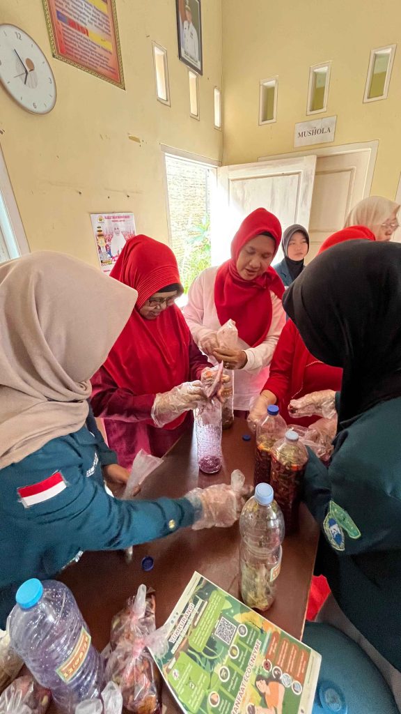 Kegiatan sosialisasi dilaksanakan dengan memberikan materi mengenai pengolahan limbah organik menjadi ecoenzyme, cairan serbaguna yang dihasilkan melalui fermentasi buah-buahan dan sayuran yang sudah tidak terpakai, gula merah, dan air. Ecoenzyme ini memiliki manfaat luas mulai dari pembersih alami lingkungan, pupuk organik untuk tanaman, hingga pengendalian hama secara organik. Mahasiswa secara langsung mempraktikkan proses pembuatan ecoenzyme bersama para ibu-ibu PKK yang tampak antusias dan bersemangat mengikuti pelatihan.