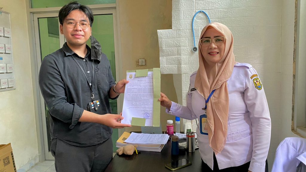 Selanjutnya, koordinasi dengan Puskesmas Pembantu Negeri Olok Gading difokuskan pada aspek teknis dan medis kegiatan. Pembahasan meliputi mekanisme pelaksanaan screening anemia, kesesuaian prosedur pemeriksaan darah, penggunaan alat kesehatan, serta penerapan standar operasional dan keselamatan peserta. Koordinasi ini menjadi penting mengingat kegiatan melibatkan pemeriksaan darah yang harus dilakukan oleh tenaga atau mahasiswa kesehatan yang kompeten dan terstandardisasi.