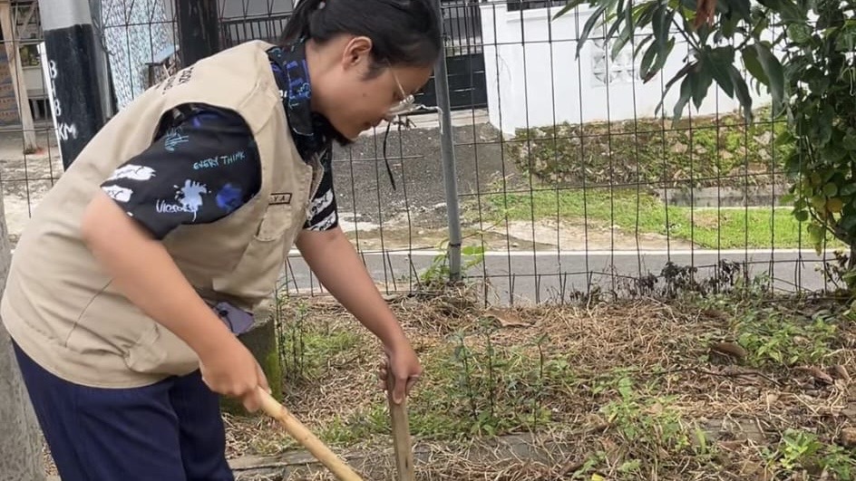 Selain membersihkan lingkungan, mahasiswa KKN Kelompok 2 juga membuat gundukan tanah yang akan dimanfaatkan sebagai media penanaman vertical garden. Lahan tersebut direncanakan untuk ditanami tanaman obat keluarga (TOGA) dan tanaman lainnya sebagai bagian dari program kerja lingkungan.
