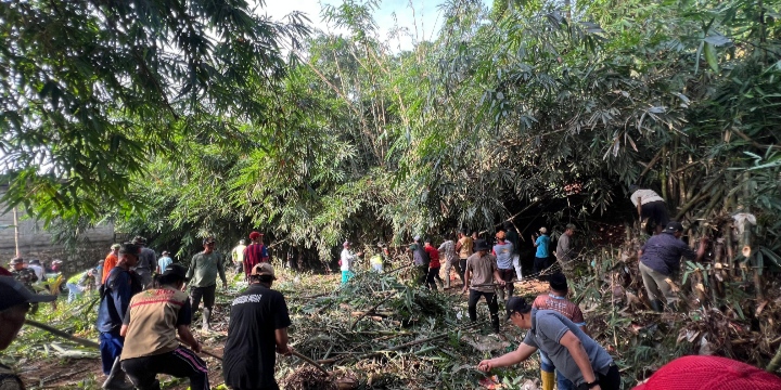Pemerintah Kelurahan Campang Jaya bersama masyarakat dan mahasiswa KKN Universitas Lampung ikuti kegiatan Grebek Kali Way Campang berupa pembersihan sampah dan bambu di aliran Kali Way Campang.