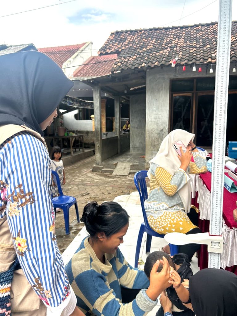 Dalam kegiatan posyandu tersebut, mahasiswa KKN membantu pelaksanaan berbagai layanan kesehatan, antara lain pengukuran berat badan dan tinggi badan anak-anak sebagai bagian dari pemantauan tumbuh kembang balita. Selain itu, mahasiswa juga terlibat dalam pemeriksaan kesehatan bagi warga dewasa, meliputi pengukuran kadar gula darah, tinggi badan, berat badan, serta lingkar perut.