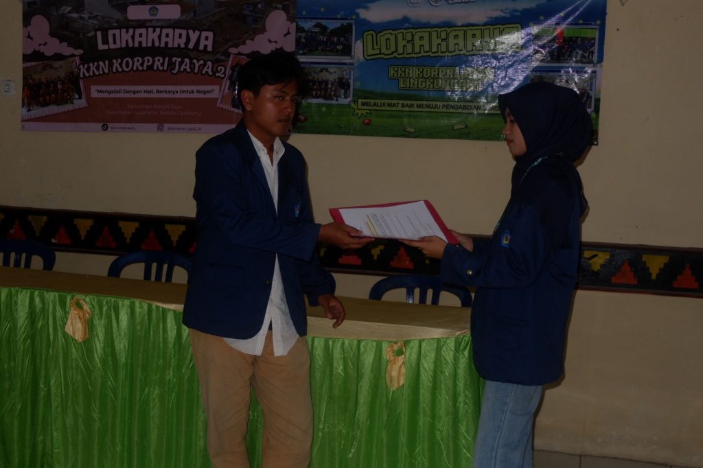 Pada siang hari, pukul 14.00 hingga 16.00 WIB, mahasiswa KKN bersama Kelompok KKN Korpri Jaya Lingkungan II melaksanakan lokakarya di Aula Kelurahan Korpri Jaya. Lokakarya ini menjadi forum pengenalan program kerja yang akan dilaksanakan selama masa KKN, sekaligus sebagai sarana penyampaian rencana kegiatan kepada pihak kelurahan dan masyarakat.Rangkaian kegiatan tersebut menunjukkan keterlibatan aktif mahasiswa KKN dalam berbagai aspek kehidupan masyarakat, mulai dari lingkungan, kesehatan, hingga perencanaan program kerja di Kelurahan Korpri Jaya.