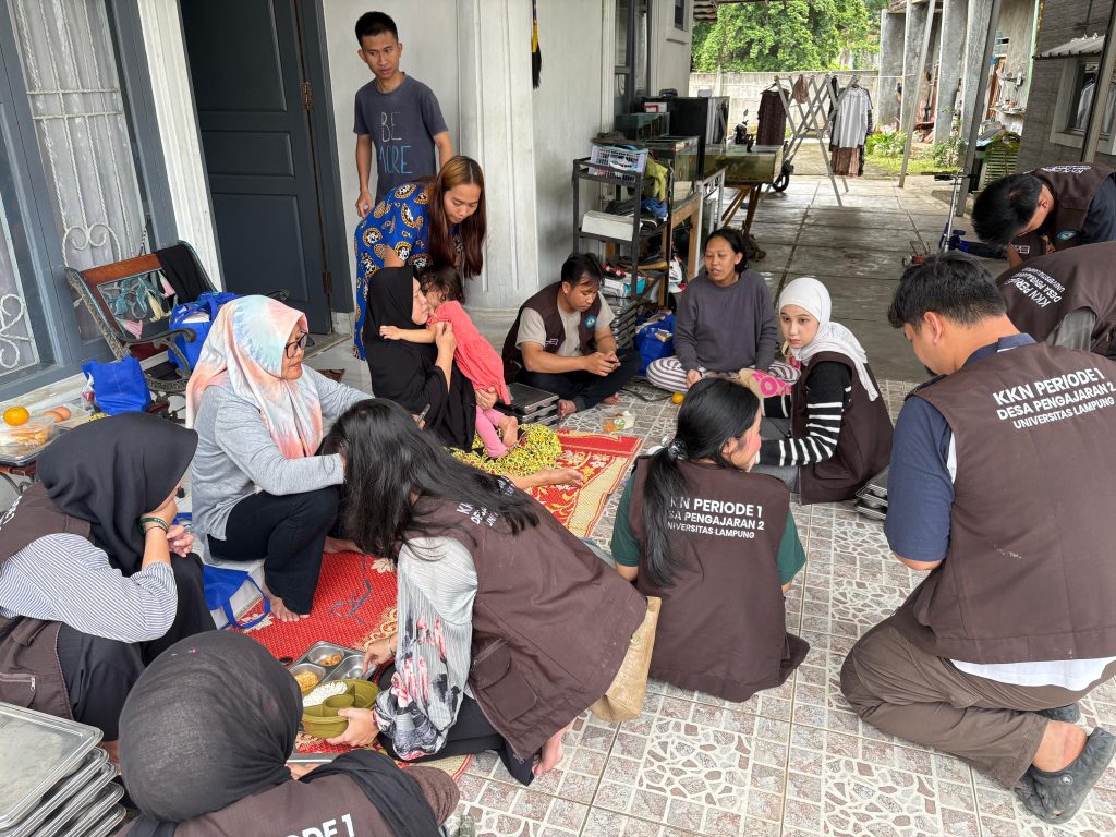 Bandar Lampung — Mahasiswa Kuliah Kerja Nyata (KKN) Pengajaran 2 melaksanakan kegiatan pembagian Makanan Bergizi (MBG) kepada balita dan ibu hamil sebagai upaya mendukung peningkatan gizi masyarakat dan pencegahan stunting. Kegiatan ini dilaksanakan di wilayah Kelurahan Pengajaran, Kecamatan Teluk Betung Utara, Kota Bandar Lampung.