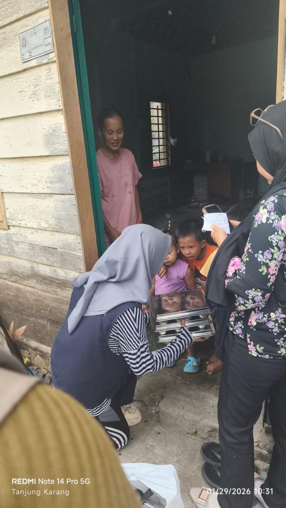 Bandar Lampung, 30 Januari 2026 – Mahasiswa Kuliah Kerja Nyata (KKN) yang bertugas di Kelurahan Sawah Lama turut berpartisipasi dalam kegiatan Posyandu dengan membantu kader posyandu membagikan omprengan Makanan Bergizi Gratis (MBG) kepada balita, batita, dan ibu hamil di Lingkungan 2, Sawah Lama. Kegiatan ini merupakan bentuk dukungan mahasiswa terhadap program peningkatan gizi masyarakat serta upaya pencegahan stunting sejak dini.