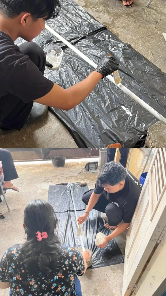 Proses pengecatan dilakukan secara gotong royong oleh seluruh anggota kelompok KKN UNILA dengan menggunakan peralatan sederhana seperti kuas, cat, dan perlengkapan pendukung lainnya. Mahasiswa juga berkoordinasi dengan warga setempat agar kegiatan berjalan lancar tanpa mengganggu aktivitas masyarakat.Melalui kegiatan ini, mahasiswa KKN UNILA berharap dapat memberikan manfaat nyata bagi lingkungan Kelurahan Beringin Raya serta menumbuhkan rasa kepedulian terhadap fasilitas umum.