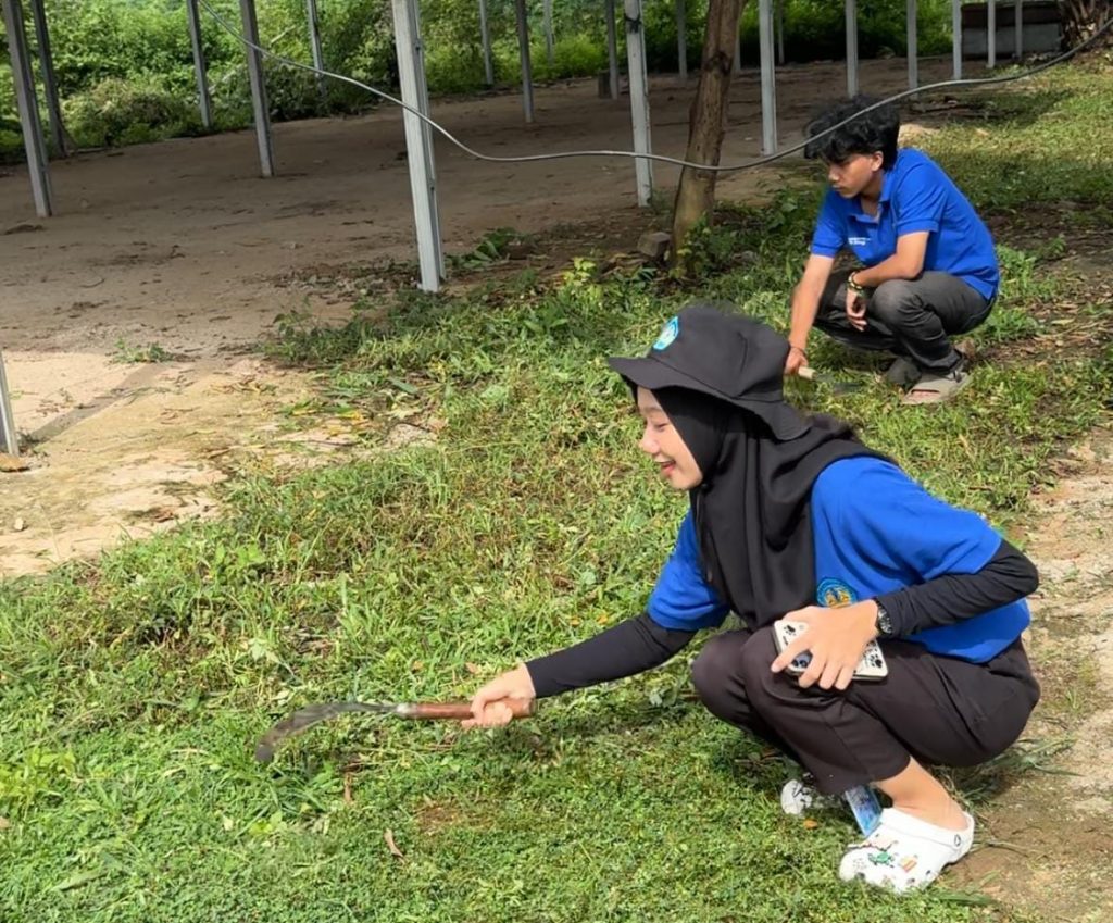 Dalam kegiatan tersebut, mahasiswa dan warga melakukan pembersihan sampah, memotong rumput liar, serta menyapu sampah dan rumput yang telah dibersihkan agar area pasar terlihat lebih rapi. Seluruh rangkaian kegiatan dilaksanakan secara bersama-sama dengan penuh semangat kebersamaan dan kepedulian terhadap lingkungan.