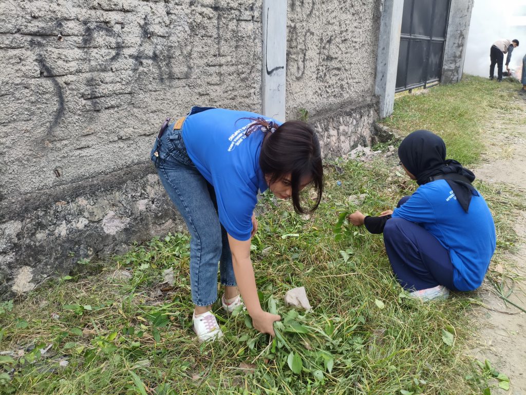 Dengan semangat yang tinggi dan suasana yang penuh kekeluargaan, mahasiswa dan warga saling bekerja sama melakukan berbagai aktivitas, seperti menyapu dan merapikan jalanan, mencabut rumput liar yang tumbuh liar di sisi trotoar, membersihkan drainase dari lumpur dan sampah, serta mengumpulkan dan memilah sampah organik dan anorganik. Beberapa warga bahkan tampak membawa air sebagai bentuk dukungan dan kebersamaan dalam kegiatan ini.