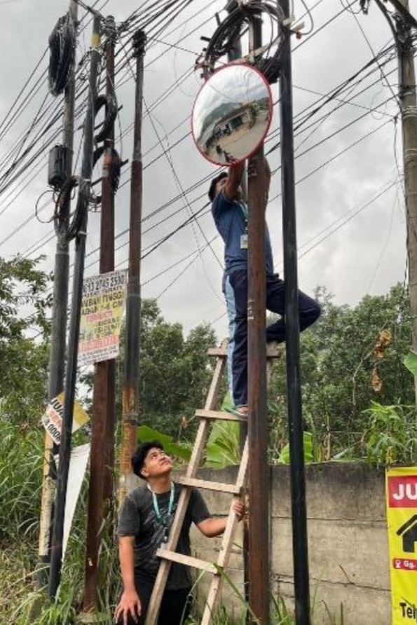 Mahasiswa KKN Unila Kelurahan Campang Jaya1 melakukan pemasangan Kaca Cembung sebagai marga jalan di gang Rewok RT 05 LK 2 Kelurahan Campang Jaya.