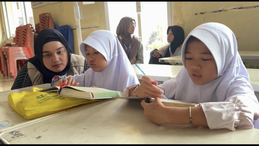 Bandar Lampung — Mahasiswa Kuliah Kerja Nyata (KKN) Universitas Lampung Kelompok 1 Kelurahan Rajabasa melaksanakan kegiatan belajar mengaji bagi anak-anak sekolah dasar pada Selasa sore, 27 Januari 2026, mulai pukul 16.00 WIB. Kegiatan ini berlangsung di Aula Kantor Kelurahan Rajabasa, Kecamatan Rajabasa, Kota Bandar Lampung.