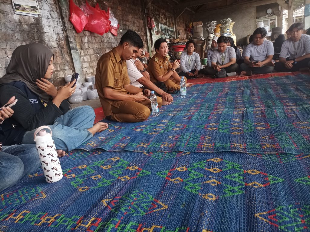 Dalam kunjungan tersebut, para mahasiswa mengikuti sesi pembahasan bersama pengrajin gerabah di lokasi produksi. Mereka menyimak penjelasan mengenai proses pembuatan gerabah, mulai dari pengolahan bahan baku, teknik pembentukan, hingga tahap pembakaran dan pemasaran hasil kerajinan. Suasana berlangsung khidmat dengan mahasiswa duduk melingkar dan memperhatikan informasi yang disampaikan.