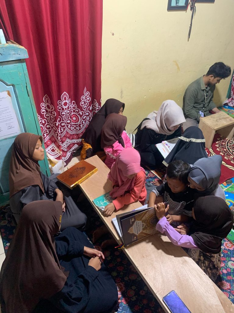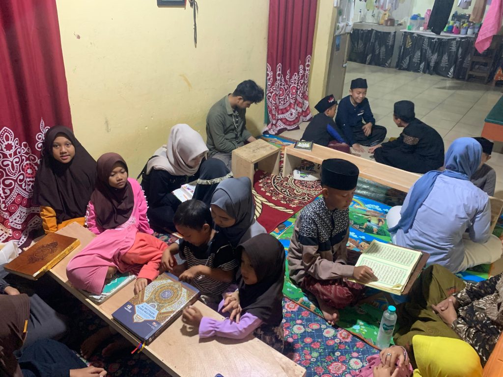 Seperti sebelumnya, para mahasiswa membimbing anak anak dalam membaca huruf hijaiyah, memperbaiki tajwid, serta melatih kelancaran bacaan Al-Qur’an. Suasana belajar terlihat hangat dan penuh semangat, dengan anak-anak yang antusias mengikuti setiap arahan.
