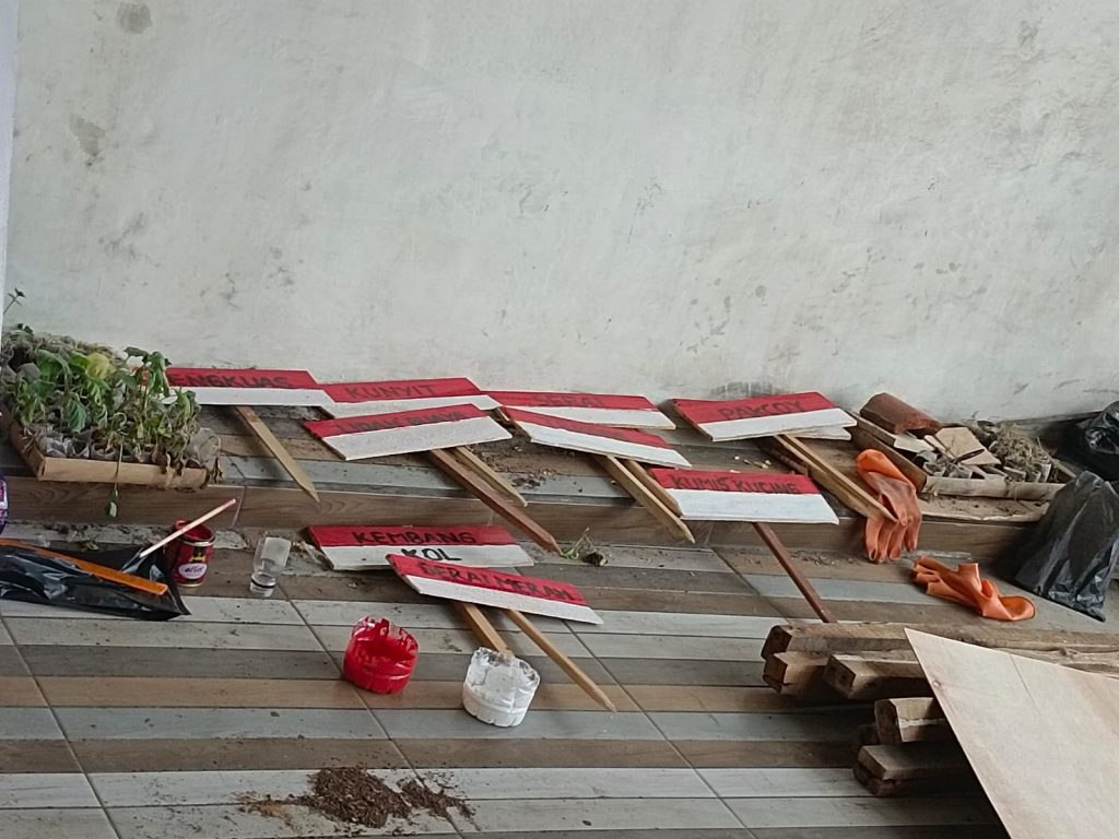 Bandarlampung, 13 Agustus 2025 — Mahasiswa Kuliah Kerja Nyata (KKN) Universitas Lampung yang bertugas di Kelurahan Way Dadi melaksanakan kegiatan pembuatan papan nama untuk mendukung Program Kerja “Hijaukan Bersama Desa” dan “Taman Gizi Keluarga”. Papan nama tersebut dibuat sebagai penanda setiap tanaman yang ada di area program.