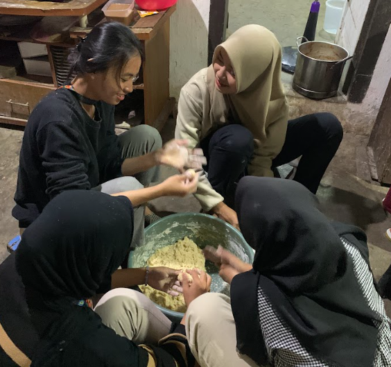 Pada malam harinya, mahasiswa KKN Enggal kembali melanjutkan rangkaian kegiatan dengan fokus pada aspek kesehatan masyarakat, yaitu membantu pembuatan makanan tambahan bergizi.