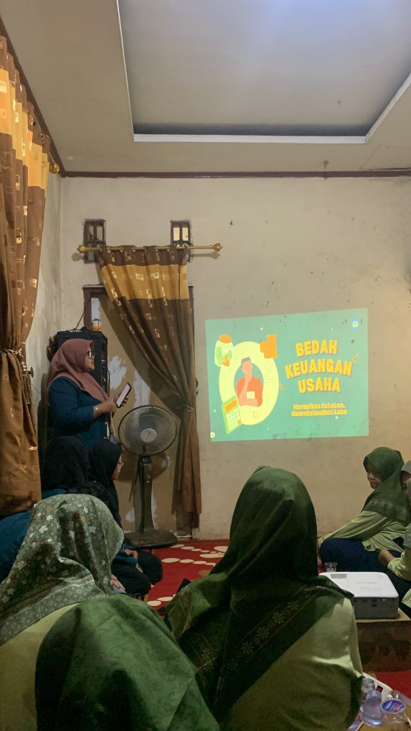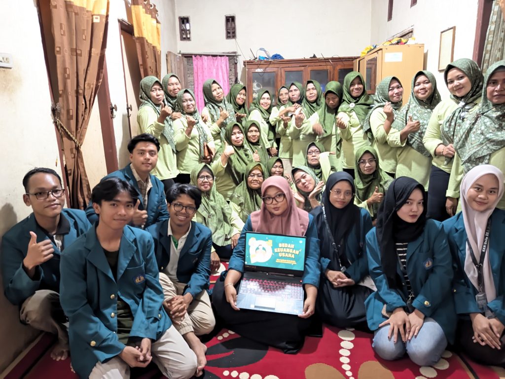 Para peserta yang sebagian besar merupakan pelaku usaha mikro menyambut antusias penjelasan yang diberikan. Mahasiswa juga melakukan simulasi penggunaan aplikasi, mulai dari tahap pendaftaran akun hingga input data transaksi, sehingga peserta dapat langsung memahami cara pengoperasiannya.