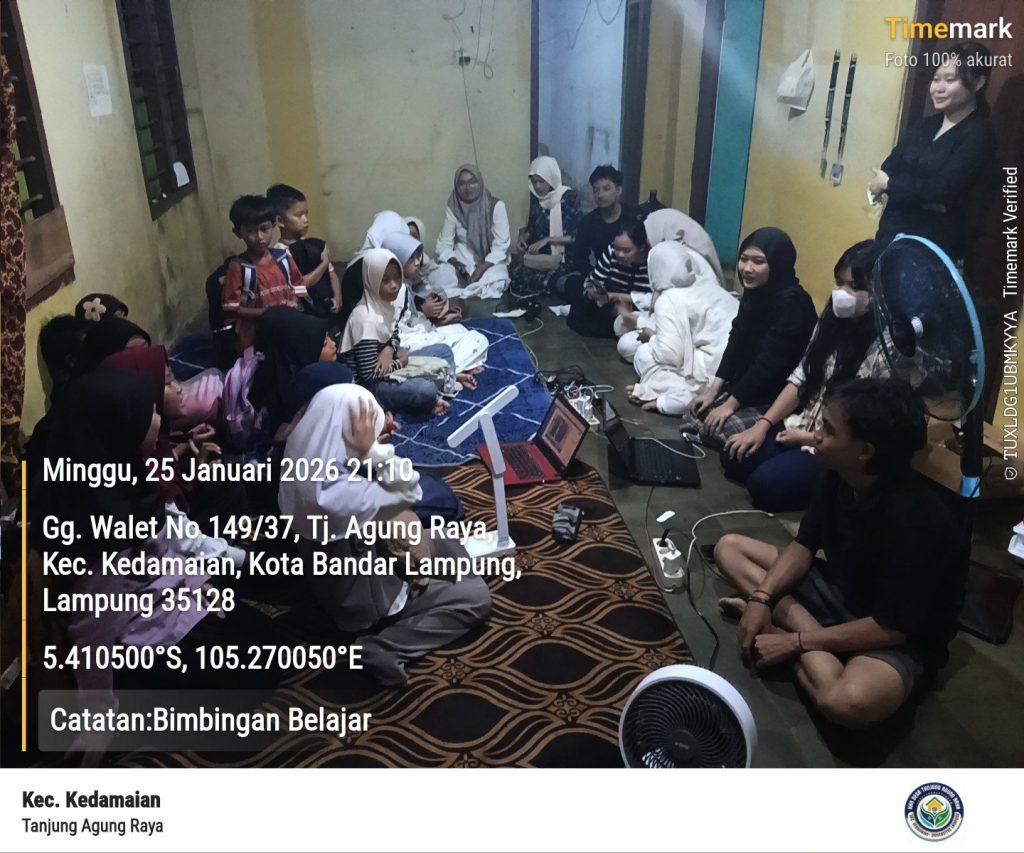BANDAR LAMPUNG – Kegiatan bimbingan belajar yang diselenggarakan Mahasiswa Kuliah Kerja Nyata (KKN) Universitas Lampung (Unila) di Kelurahan Tanjung Agung Raya diawali dengan menonton film edukatif yang mengandung nilai-nilai persahabatan dan kekeluargaan. Kegiatan ini diikuti oleh siswa tingkat Sekolah Dasar (SD) dan Sekolah Menengah Pertama (SMP) pada Minggu (25/01/2026), bertempat di Posko Mahasiswa KKN Unila setempat sebagai bentuk pengabdian di bidang pendidikan.