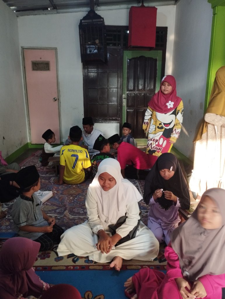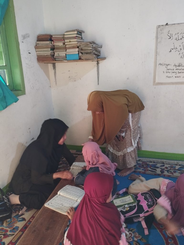 Pada Senin, 28 Juli 2025, mahasiswa KKN bergabung dalam kegiatan mengajar di TPA milik Ustadz Rusli. Di tempat ini, para mahasiswa membantu mengajarkan bacaan Al-Qur’an kepada anak-anak, sekaligus menanamkan semangat cinta Al-Qur’an sejak usia dini. kegiatan ini dilakukan pada waktu ba’da ashar.