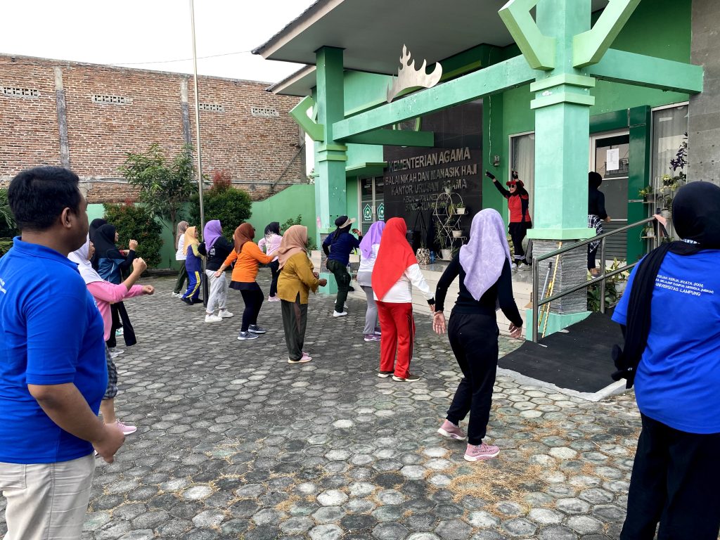 Sementara itu, pada sore harinya, mahasiswa KKN juga mengikuti senam bersama ibu-ibu warga Kelurahan Sukamenanti. Kegiatan ini berlangsung meriah dan menjadi momen kebersamaan yang menyenangkan antara mahasiswa dan masyarakat, sekaligus sebagai upaya menjaga kebugaran dan mempererat hubungan sosial.