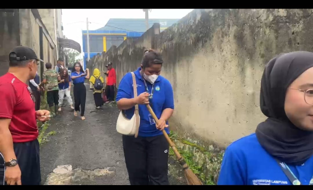 Bandar Lampung, 30 Januari 2026. Mahasiswa Kuliah Kerja Nyata (KKN) Kelurahan SumberRejo turut berpartisipasi dalam kegiatan gotong royong bersama warga RT 14 Lingkungan 1. Kegiatan ini menjadi agenda tetap masyarakat setiap hari jumat dengan sistem bergilir ke masing-masing RT sebagai upaya menjaga kebersihan dan mempererat rasa kebersamaan antarwarga. Gotong royong dilakukan dengan membersihkan lingkungan sekitar, seperti saluran air, jalan, serta area fasilitas umum di wilayah RT 14. Mahasiswa KKN dengan antusias ikut membantu warga dalam berbagai aktivitas, mulai dari menyapu, mengumpulkan sampah, hingga merapikan lingkungan.