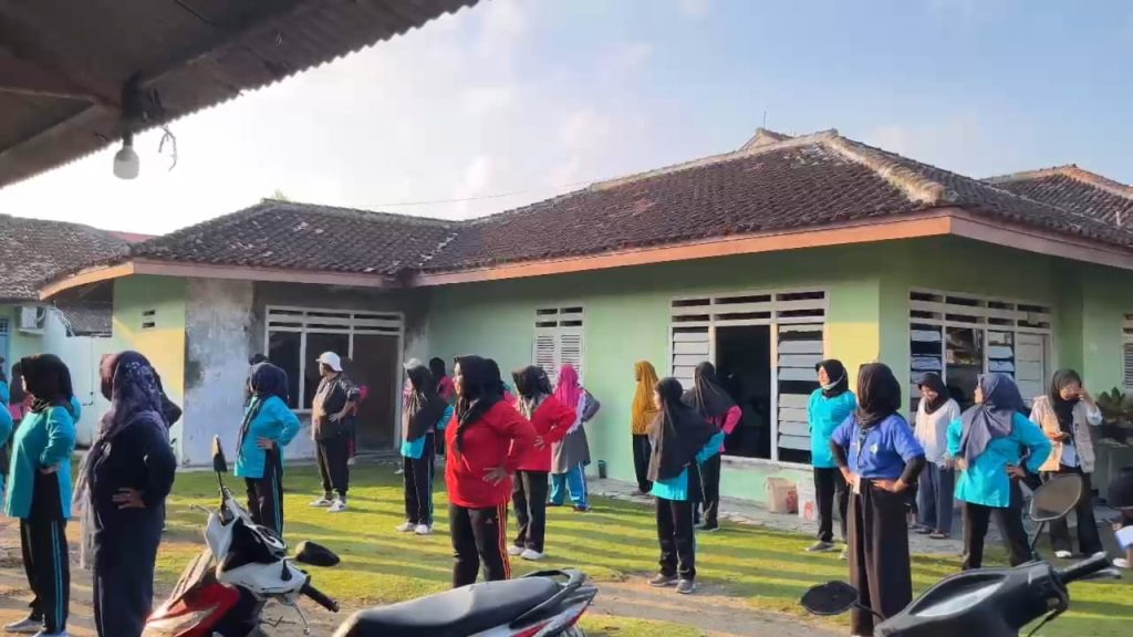 Senam pagi berlangsung dengan suasana ceria dan penuh semangat. Para mahasiswa tampak antusias mengikuti gerakan demi gerakan senam bersama para ibu kader dan warga sekitar. Momen tersebut menjadi ruang interaksi yang hangat antara mahasiswa dan masyarakat setempat.