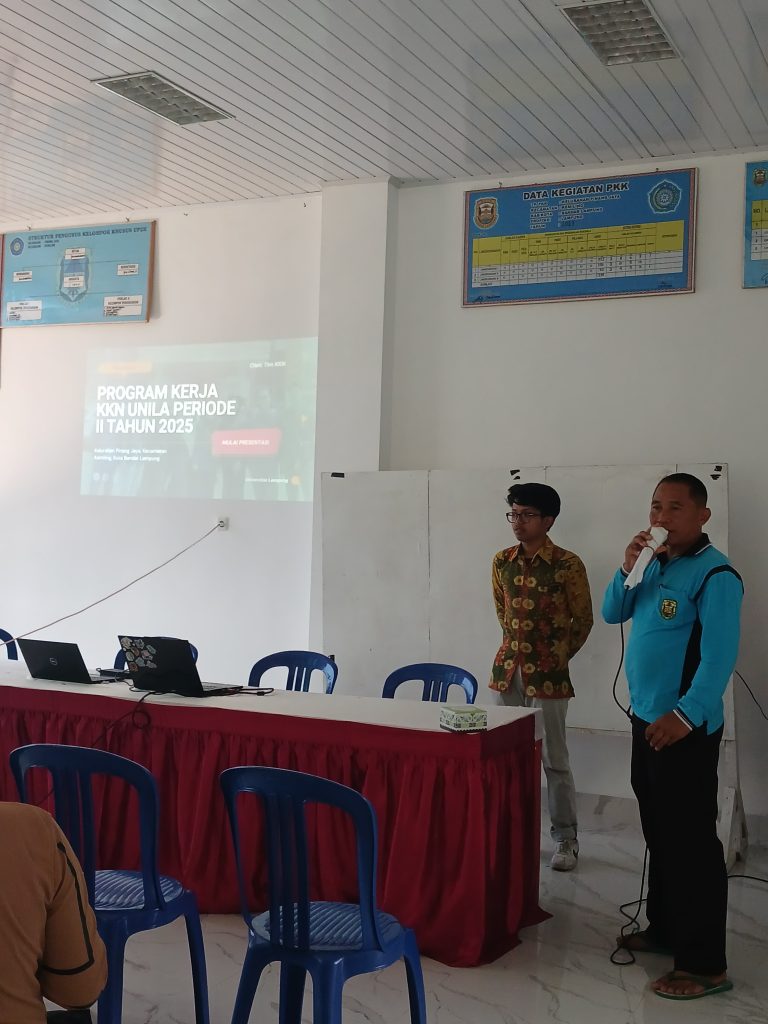 Pinang Jaya, 25 Juli 2025 – Mahasiswa Kuliah Kerja Nyata (KKN) Universitas Lampung (Unila) yang tengah mengabdi di Kelurahan Pinang Jaya, Kecamatan Kemiling, berhasil menyelenggarakan kegiatan lokakarya sebagai bagian dari rangkaian program pengabdian mereka kepada masyarakat. Acara yang digelar di aula kantor kelurahan ini berlangsung dengan lancar dan penuh antusiasme dari warga setempat.