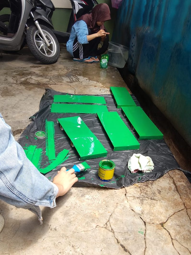 Pengerjaan yang dilakukan hari ini meliputi serangkaian tahapan teknis secara mandiri, mulai dari pengelasan kerangka bahan, pencucian bahan agar bersih dari kotoran, hingga tahap pengecatan dasar. Program ini menyasar empat lokasi utama, yaitu Jalan Rajawali II, Jalan Murai, Jalan Cendrawasih II, dan Jalan Beo.