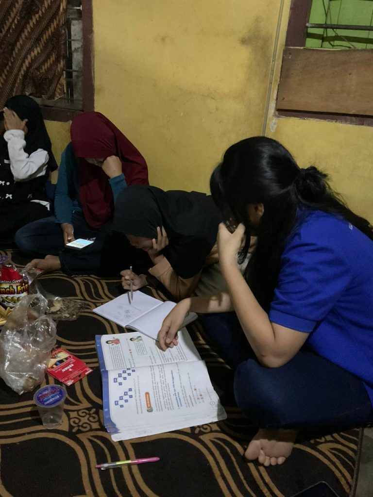 Kegiatan yang dimulai pada pukul 18.30 WIB ini dihadiri oleh 8 orang siswa tingkat Sekolah Dasar (SD). Sebagai pembukaan rangkaian program bimbel selama masa KKN, mahasiswa memberikan pendampingan intensif bagi para siswa dalam menyelesaikan tugas sekolah (PR) mereka masing-masing. Fokus awal ini bertujuan untuk membangun kedekatan antara mahasiswa dan anak-anak sekitar sekaligus memetakan kebutuhan belajar mereka.