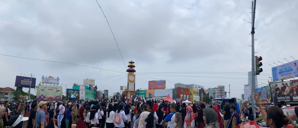 Bandar Lampung, 27 Juli 2025 – Mahasiswa Kuliah Kerja Nyata (KKN) Universitas Lampung (Unila) yang bertugas di Desa Tanjung Raya turut menghadiri acara peringatan Hari Ulang Tahun (HUT) Kota Bandar Lampung ke-343 yang digelar secara meriah di tugu adipura Kota Bandar Lampung pada Minggu (27/7/25).