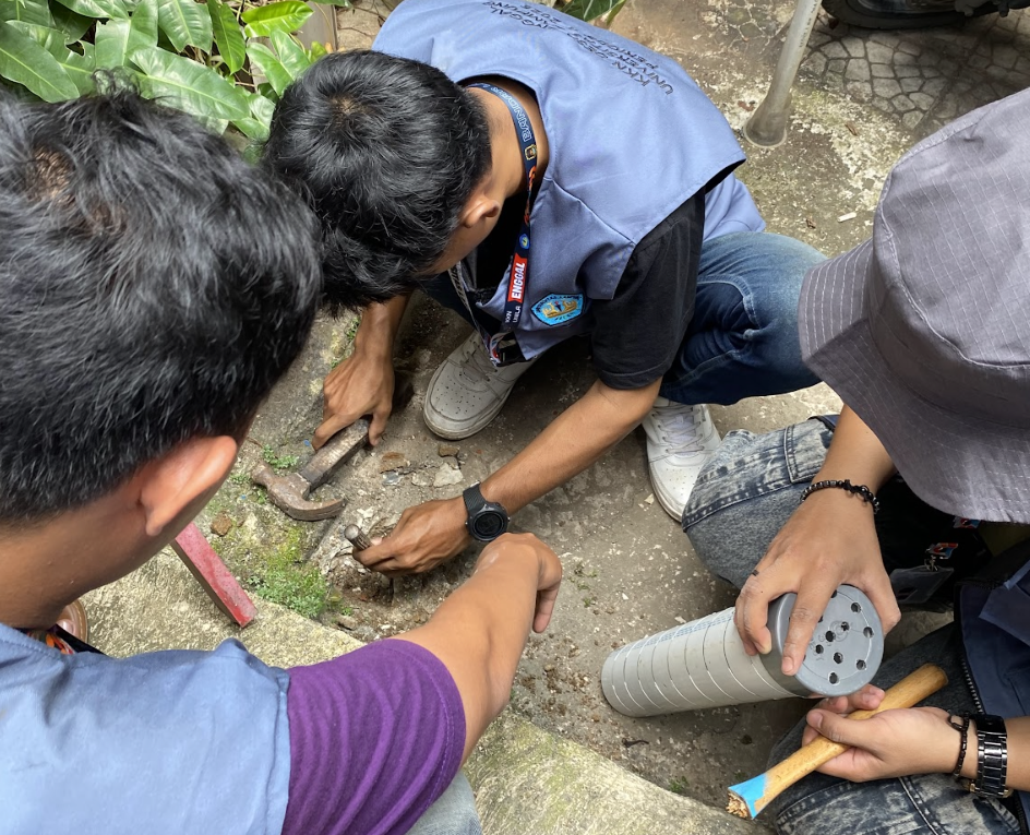 Kegiatan hari itu diawali dengan pelaksanaan program kerja pembuatan lubang biopori. Mahasiswa secara gotong royong menggali dan memasang pipa biopori di beberapa titik yang telah disepakati bersama warga setempat. Program ini bertujuan untuk mengurangi genangan air, membantu proses resapan air hujan, serta mendukung upaya penghijauan lingkungan secara berkelanjutan. Antusiasme masyarakat menjadi bukti nyata bahwa program ini disambut dengan baik dan memiliki potensi besar untuk terus dikembangkan.