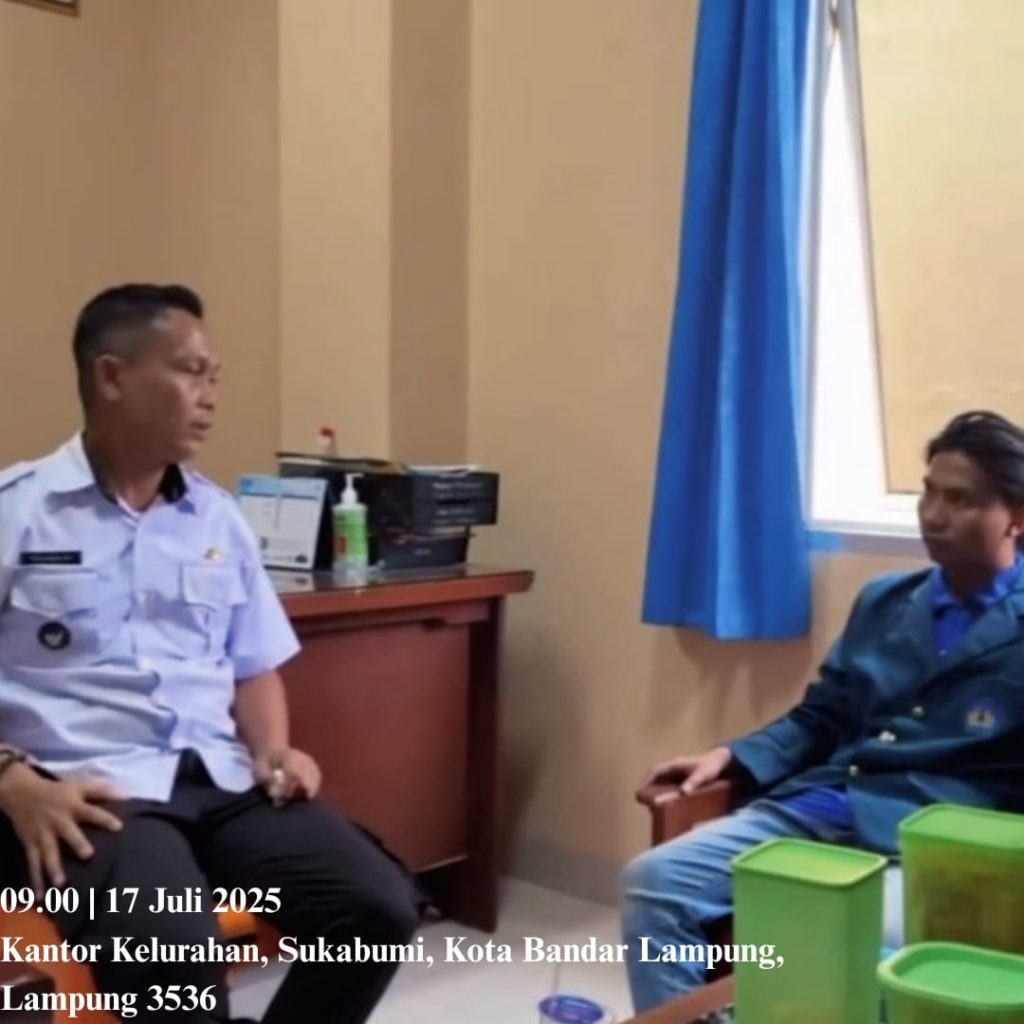 Bandar Lampung, 17 Juli 2025– Mahasiswa Kuliah Kerja Nyata (KKN) Universitas Lampung melaksanakan kegiatan diskusi bersama Lurah Kelurahan Sukabumi sebagai langkah awal dalam memahami kondisi sosial dan lingkungan wilayah setempat. Pertemuan ini berlangsung di kantor kelurahan dan dihadiri oleh Lurah Sukabumi beserta jajaran staf kelurahan.