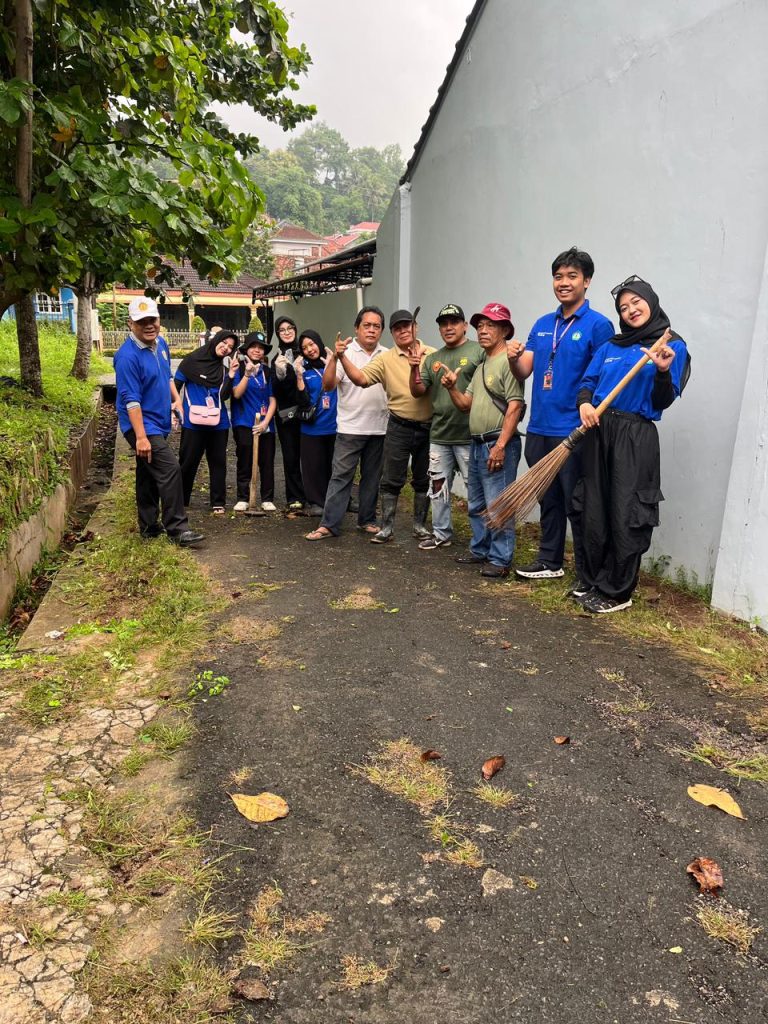 Kegiatan kerja bakti tersebut melibatkan mahasiswa KKN bersama aparat kelurahan dan masyarakat setempat. Seluruh peserta bekerja sama membersihkan rumput liar dan mengangkat daun-daun yang menyumbat saluran drainase, sehingga lingkungan kantor kelurahan tampak lebih rapi dan terawat.