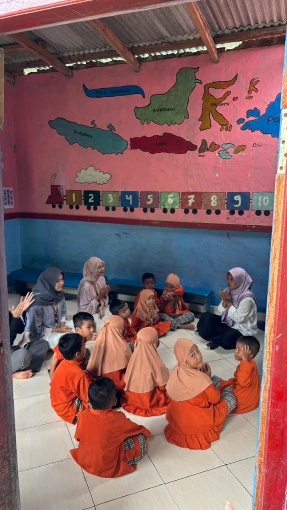 Dalam kunjungan tersebut, mahasiswa KKN turut membantu pelaksanaan kegiatan belajar mengajar bersama anak-anak PAUD. Kegiatan pendampingan dilakukan melalui berbagai aktivitas edukatif, seperti membantu anak-anak belajar mengenal huruf dan angka, bernyanyi, bermain sambil belajar, serta melatih kemampuan motorik dan interaksi sosial anak-anak. Mahasiswa KKN juga berupaya menciptakan suasana belajar yang menyenangkan agar anak-anak merasa nyaman dan antusias dalam mengikuti kegiatan.