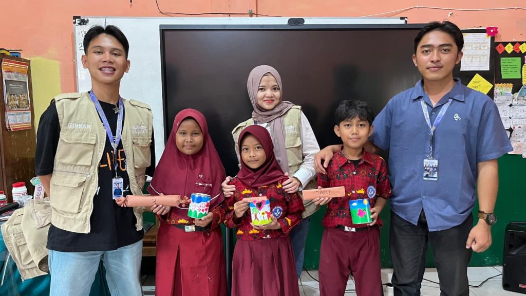 Sebagai bagian dari kegiatan praktik, mahasiswa KKN mengajak siswa untuk menghias celengan bersama. Kegiatan ini tidak hanya melatih kreativitas anak-anak, tetapi juga menjadi sarana untuk menumbuhkan kebiasaan menabung secara nyata sejak dini.