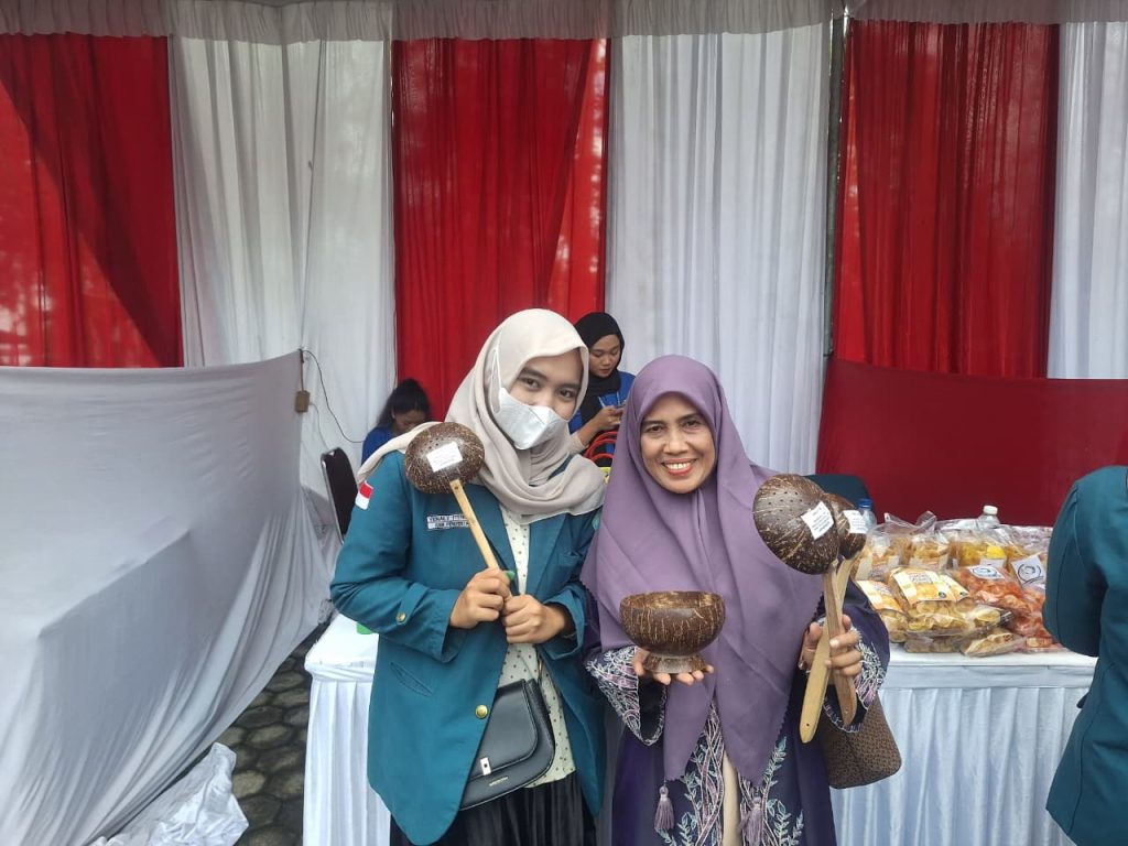 Dalam kesempatan tersebut, mahasiswa KKN memperkenalkan salah satu UMKM unggulan warga Nusantara Permai, yaitu kerajinan tangan berbahan batok kelapa. Produk kerajinan ini menarik perhatian banyak pengunjung karena menggabungkan kreativitas, nilai seni, dan keberlanjutan lingkungan.
