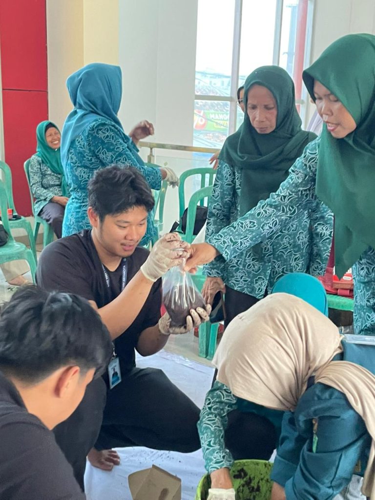 Dalam sesi sosialisasi, mahasiswa memaparkan konsep dasar hidroponik, keunggulan metode wick system, serta alasan pemilihan cocopeat sebagai media tanam. Cocopeat, yang berasal dari serbuk sabut kelapa, memiliki kemampuan menyimpan air dan nutrisi dengan baik, ramah lingkungan, serta mudah didapat di pasaran. Media ini juga ringan, sehingga wadah tanam dapat dipindahkan dengan mudah tanpa mengganggu pertumbuhan tanaman.
