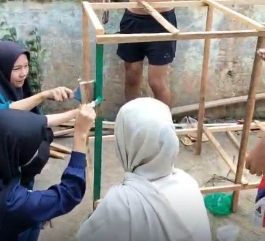 Kegiatan dimulai dengan pembelian bahan material yang akan digunakan untuk pembangunan program kerja. Selanjutnya, mahasiswa melakukan pemotongan dan perakitan bahan guna membentuk kerangka awal. Proses ini dilanjutkan dengan pengecatan sebagai tahap akhir persiapan teknis.