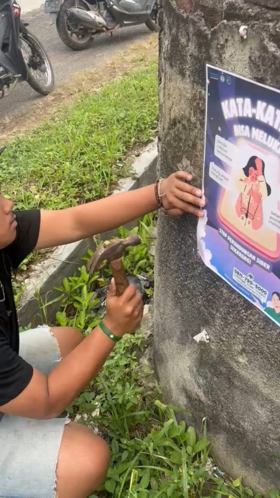 Poster-poster tersebut ditempelkan di berbagai lokasi strategis seperti dinding kantor kelurahan, papan pengumuman RT, pos ronda, dan tempat umum lainnya yang mudah diakses oleh masyarakat. Isinya mengangkat ajakan untuk mencegah kekerasan dalam rumah tangga, kekerasan terhadap anak, serta kekerasan verbal dan fisik di lingkungan sekitar.