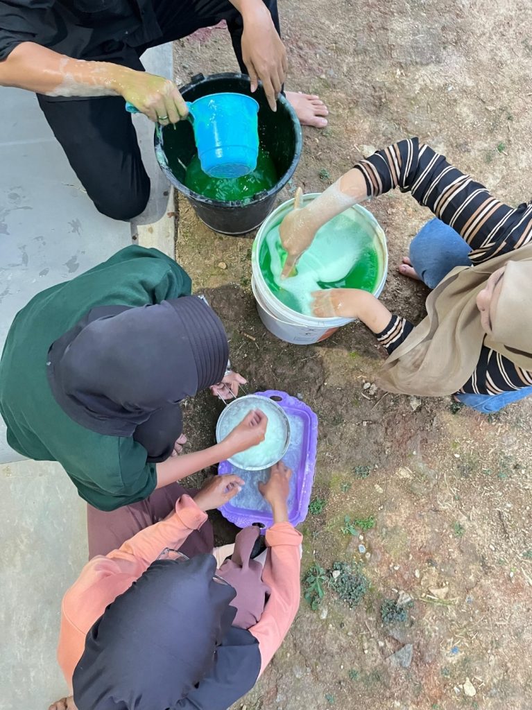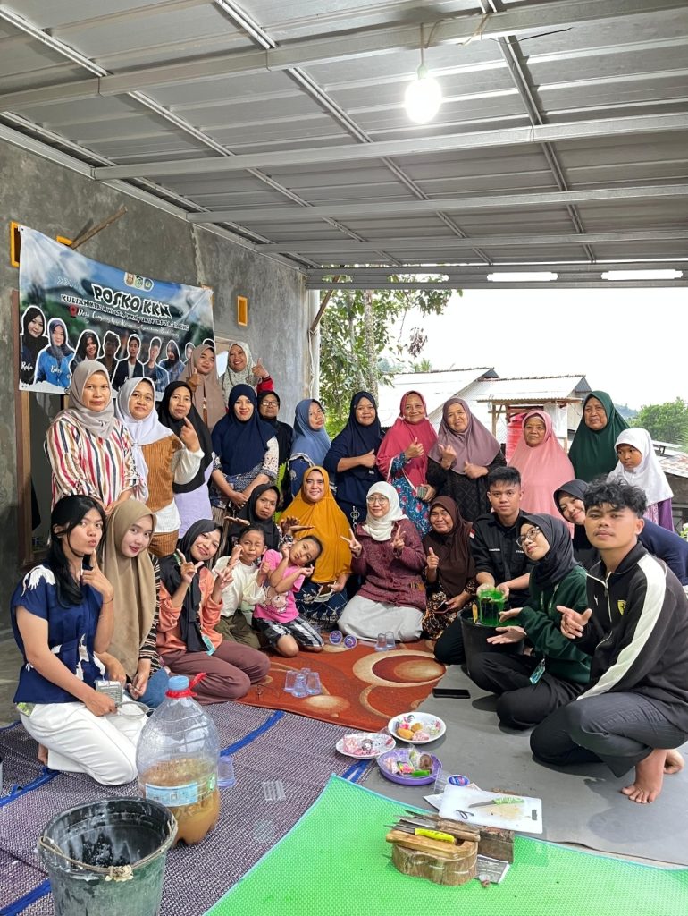 Para ibu-ibu tampak antusias mengikuti penjelasan, mulai dari takaran bahan, teknik pencampuran, hingga tips penyimpanan agar sabun tetap awet. Mahasiswa KKN juga mempraktikkan langsung pembuatan sabun di lokasi, sehingga peserta dapat melihat prosesnya secara jelas dan mencoba membuat sendiri di rumah.