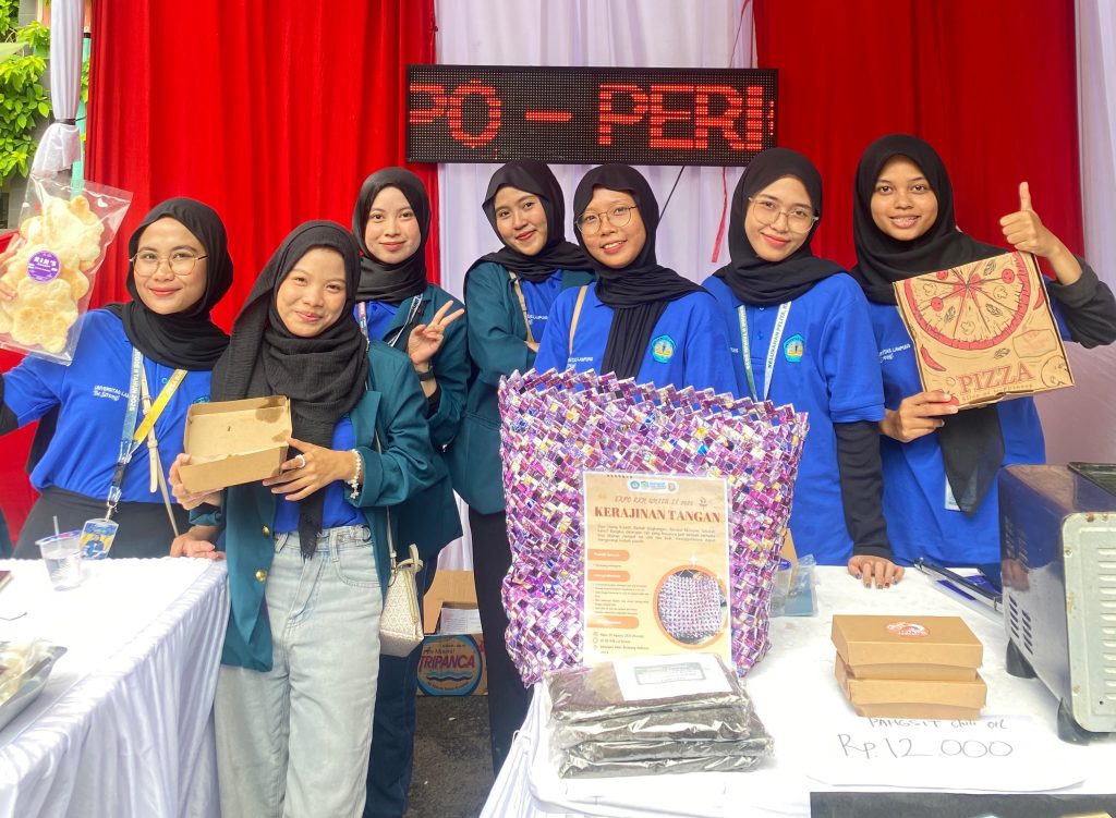 Bandar Lampung, 20 Agustus 2025, Mahasiswa Kuliah Kerja Nyata (KKN) Universitas Lampung (Unila) turut memeriahkan Expo KKN II Universitas Lampung 2025 dengan menampilkan beragam inovasi hasil program kerja dan kreativitas masyarakat binaan. Kegiatan ini menjadi wadah bagi mahasiswa untuk menunjukkan kontribusi nyata dalam mengembangkan potensi lokal sekaligus mendukung pemberdayaan ekonomi masyarakat desa. Dalam expo tersebut, stand mahasiswa KKN Unila menghadirkan berbagai produk unggulan. Di sektor kerajinan, ditampilkan karya dari limbah daur ulang yang diolah menjadi produk bernilai, seperti tas yang unik. Pada sektor kuliner, mahasiswa menyajikan makanan tradisional khas Lampung dengan kemasan modern, seperti keripik pisang aneka rasa, kue-kue basah lokal, serta minuman fermentasi buah yang dikemas lebih praktis untuk menarik minat generasi muda.